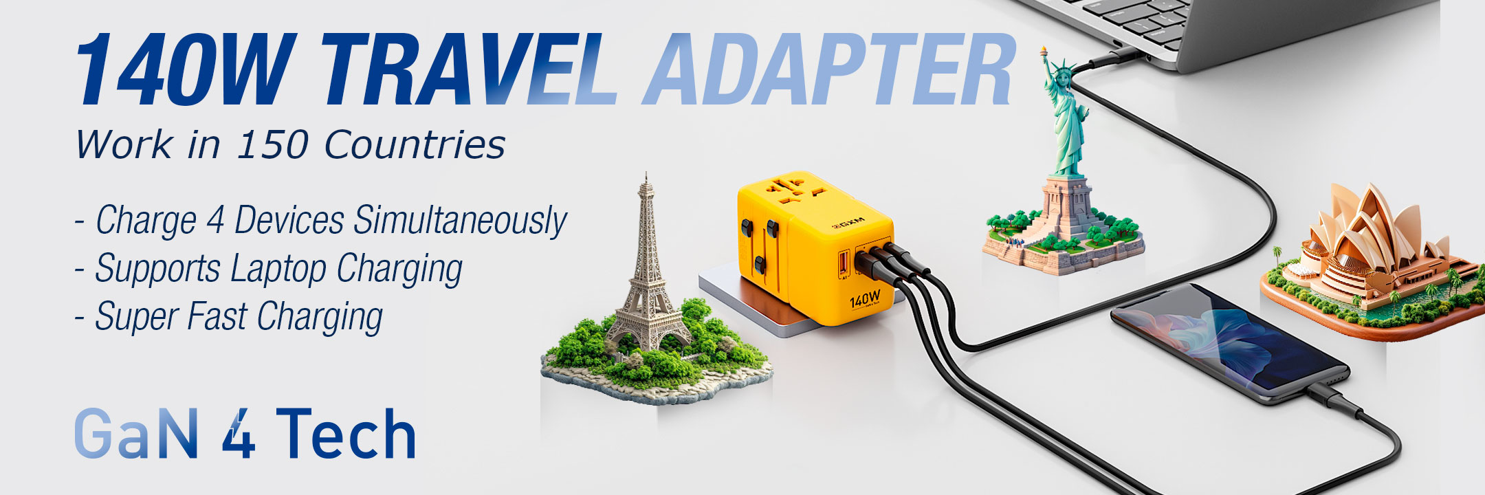 GaN ultra fast charge for your laptop/Phone/iPad, Travel around the world with one adapter.