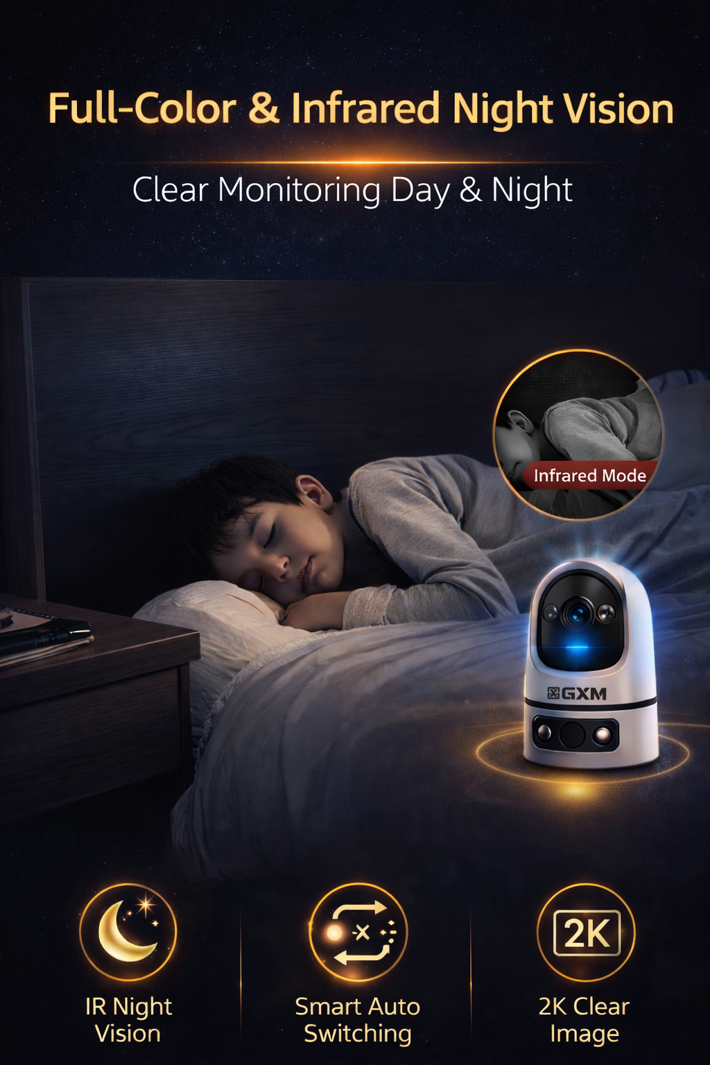 Crystal-clear monitoring even in darkness with smart switching between infrared and full-color modes.