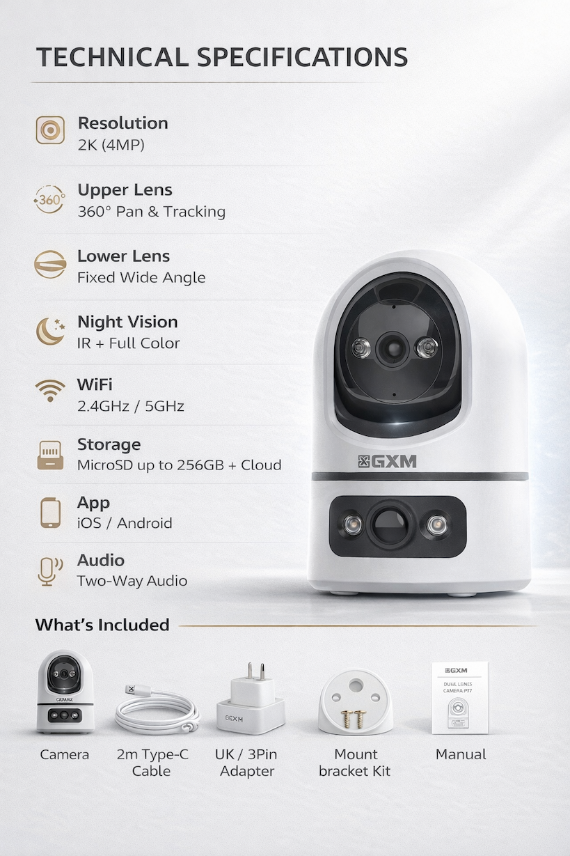 🔥 GXM P7 Dual Lens 2K Smart Camera