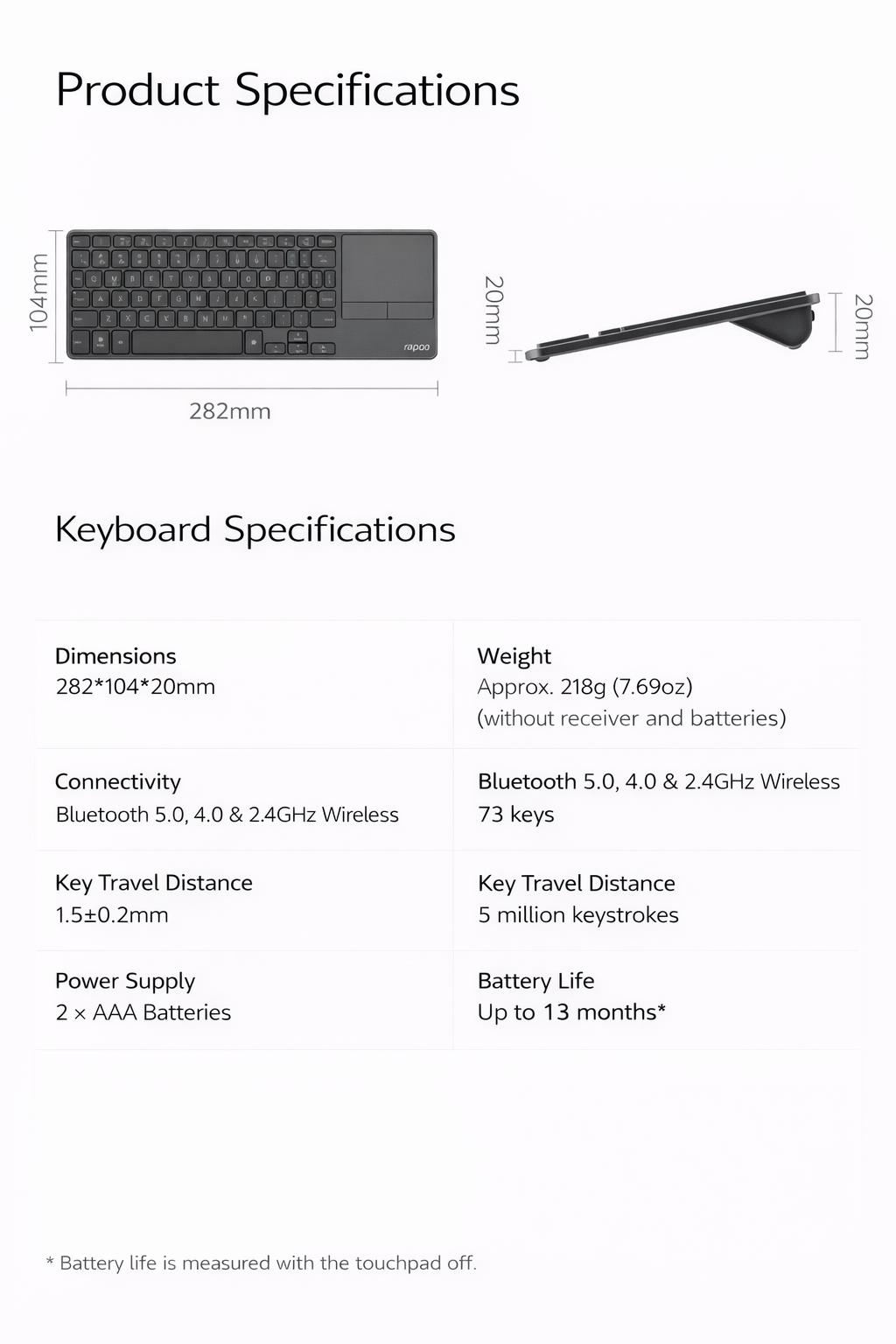 • 🔋 Long Battery Life – Up to 13 months (touchpad off)