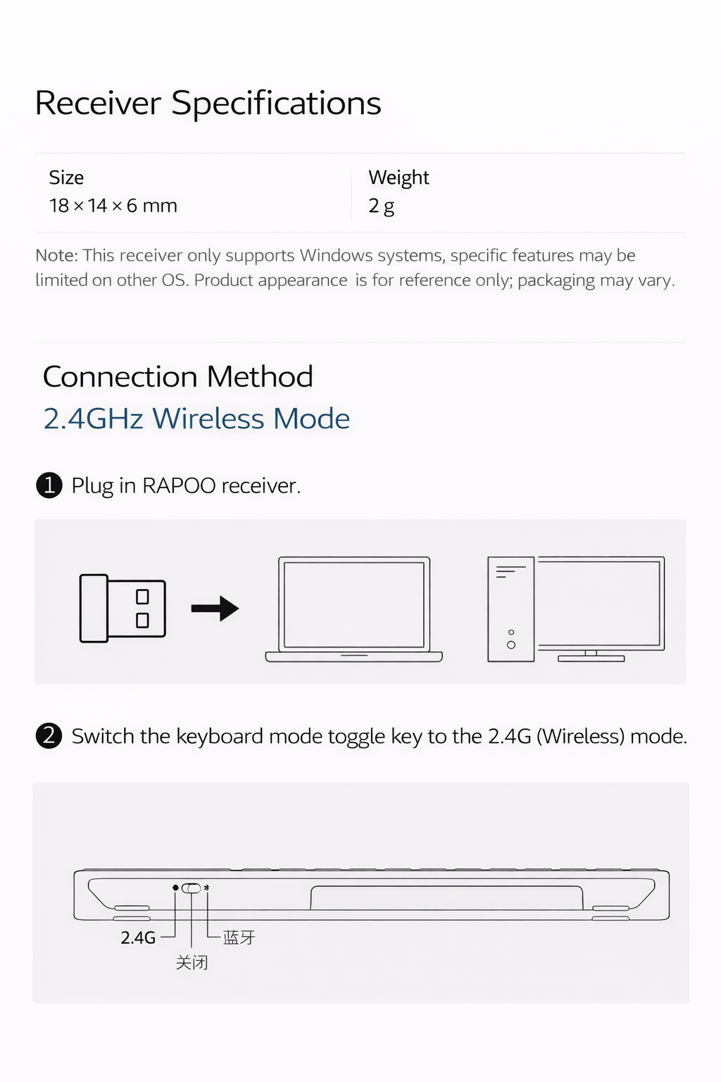 ⚠️ Note: USB receiver supports Windows systems only.