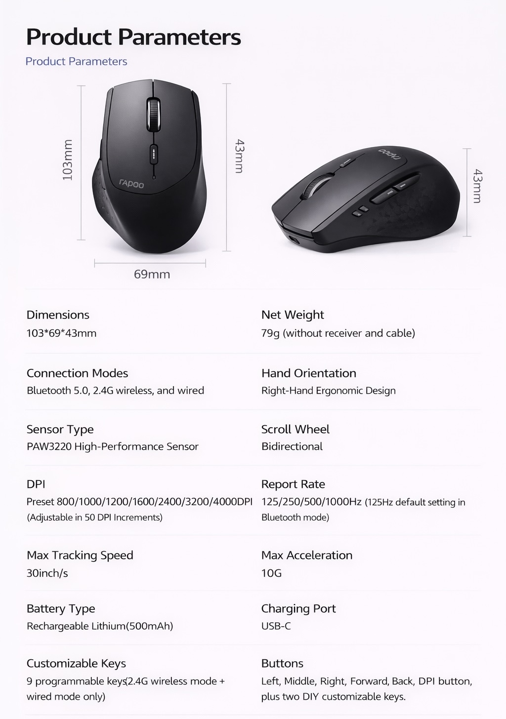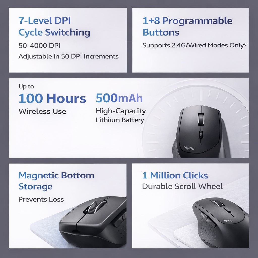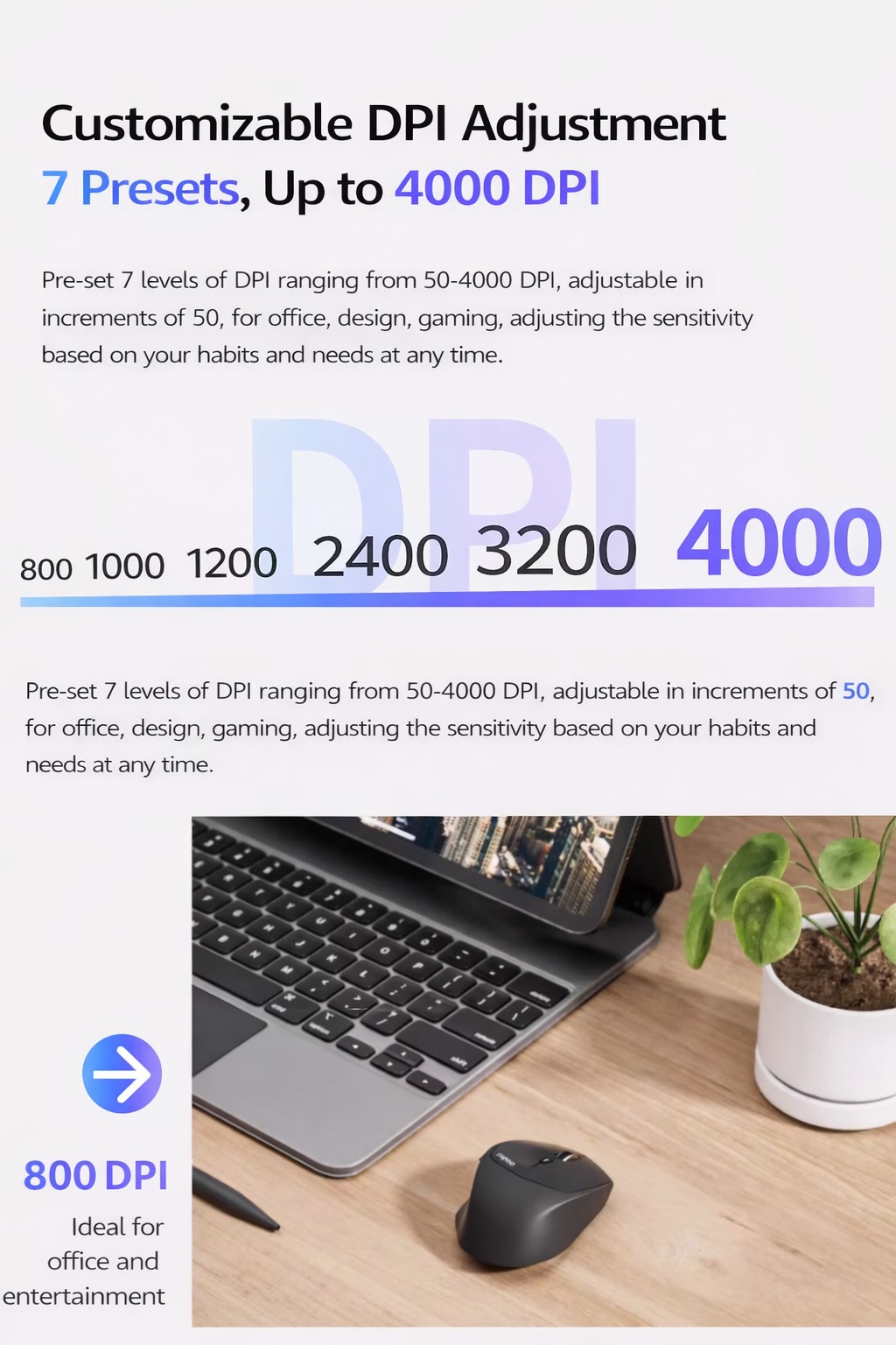 • ✅ Up to 4000 DPI – 7 preset DPI levels, adjustable in 50 DPI increments
