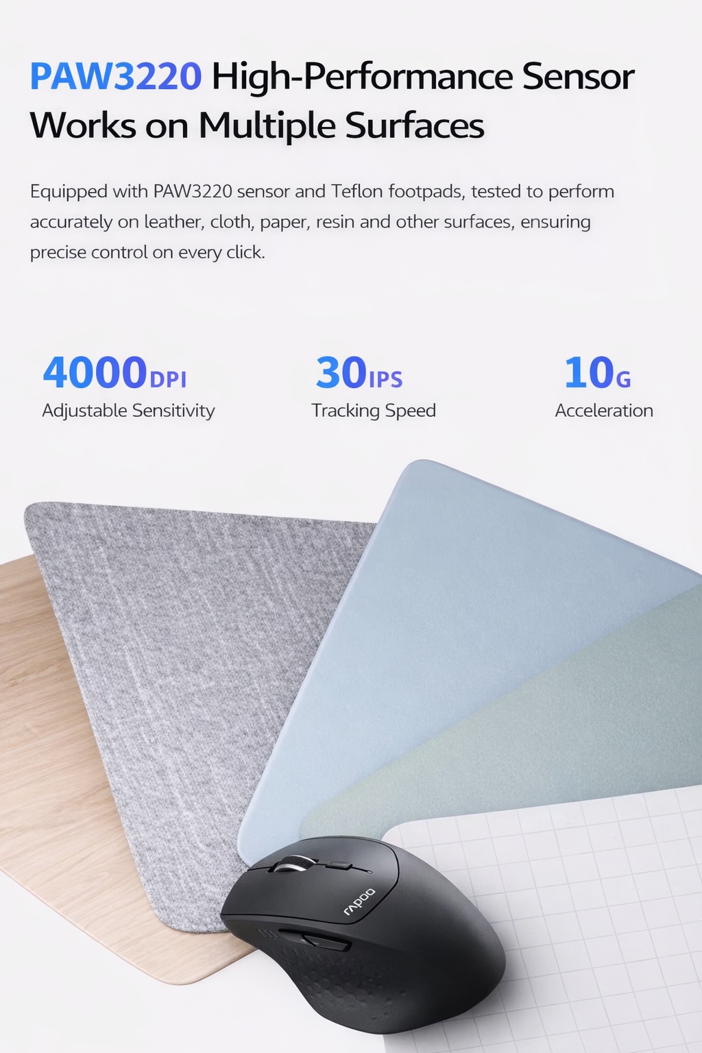 • ✅ PAW3220 High-Performance Sensor – Accurate tracking on multiple surfaces