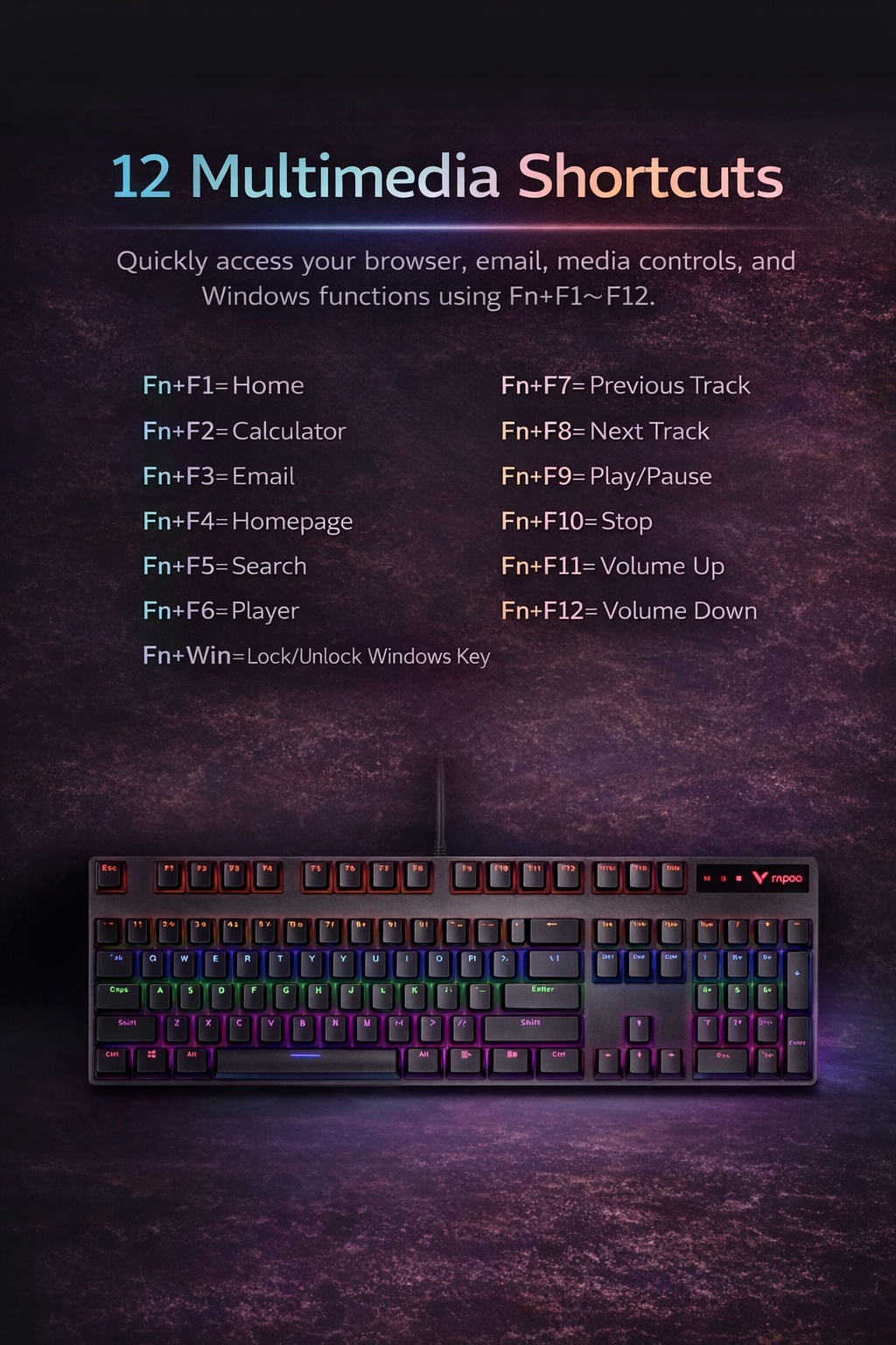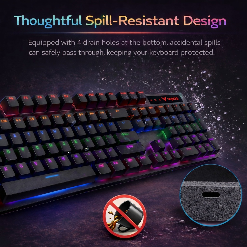 Equipped with anti-slip rubber feet and drainage holes to keep the keyboard stable and protected during daily use.